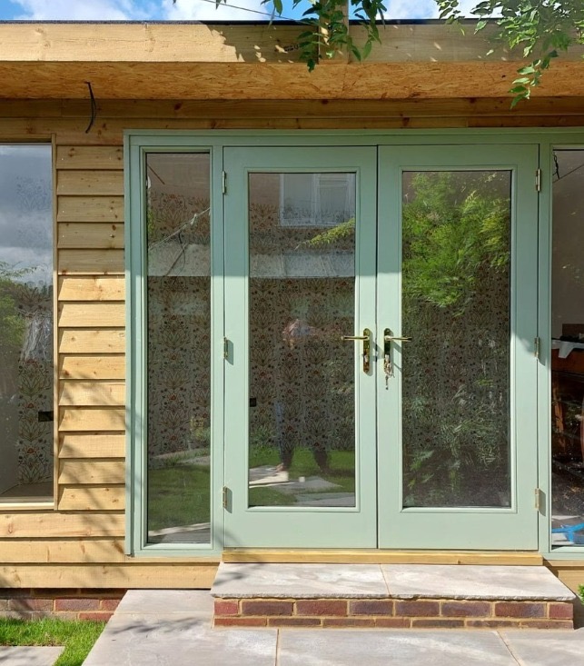 A bespoke pine-clad garden room providing a year-round studio and retreat space.